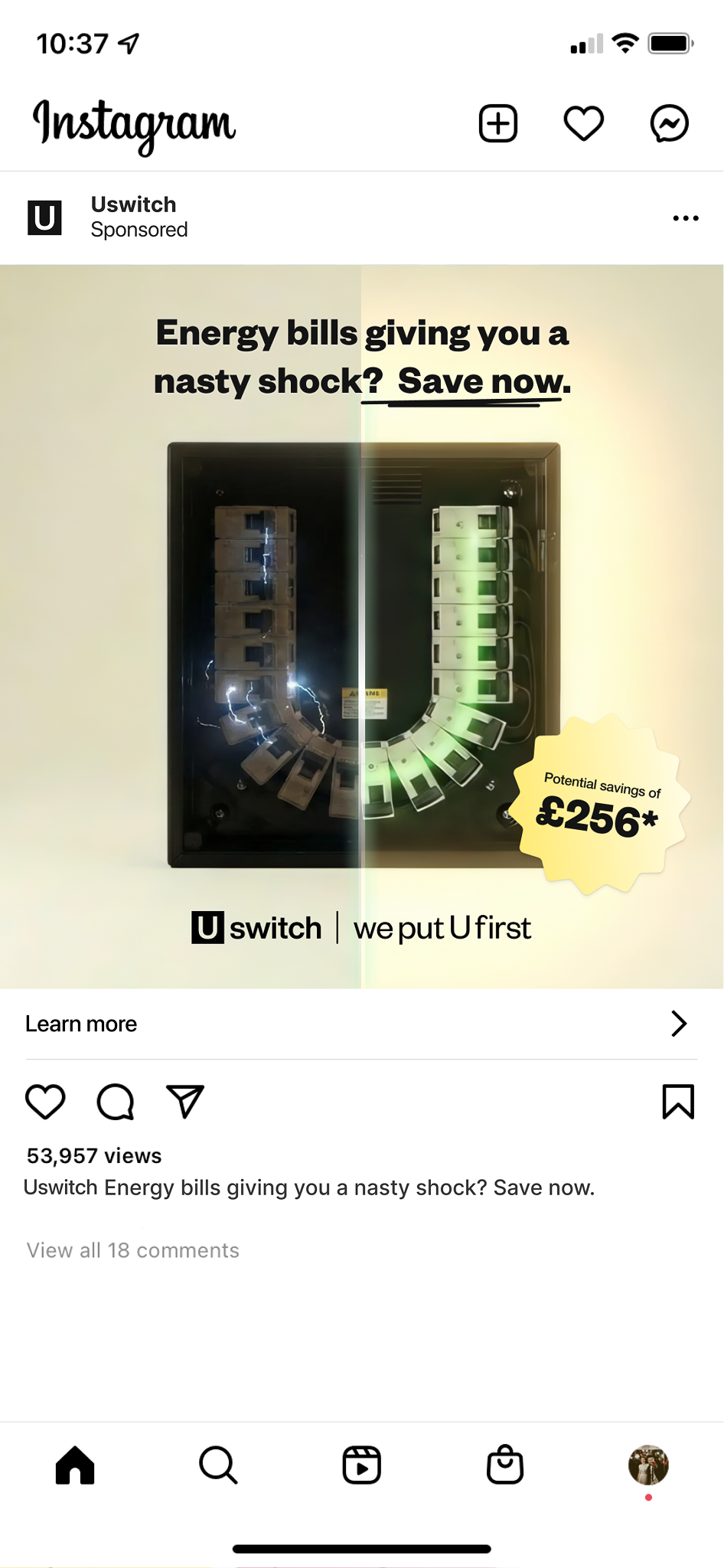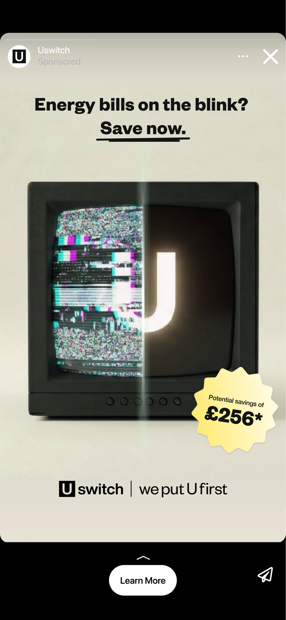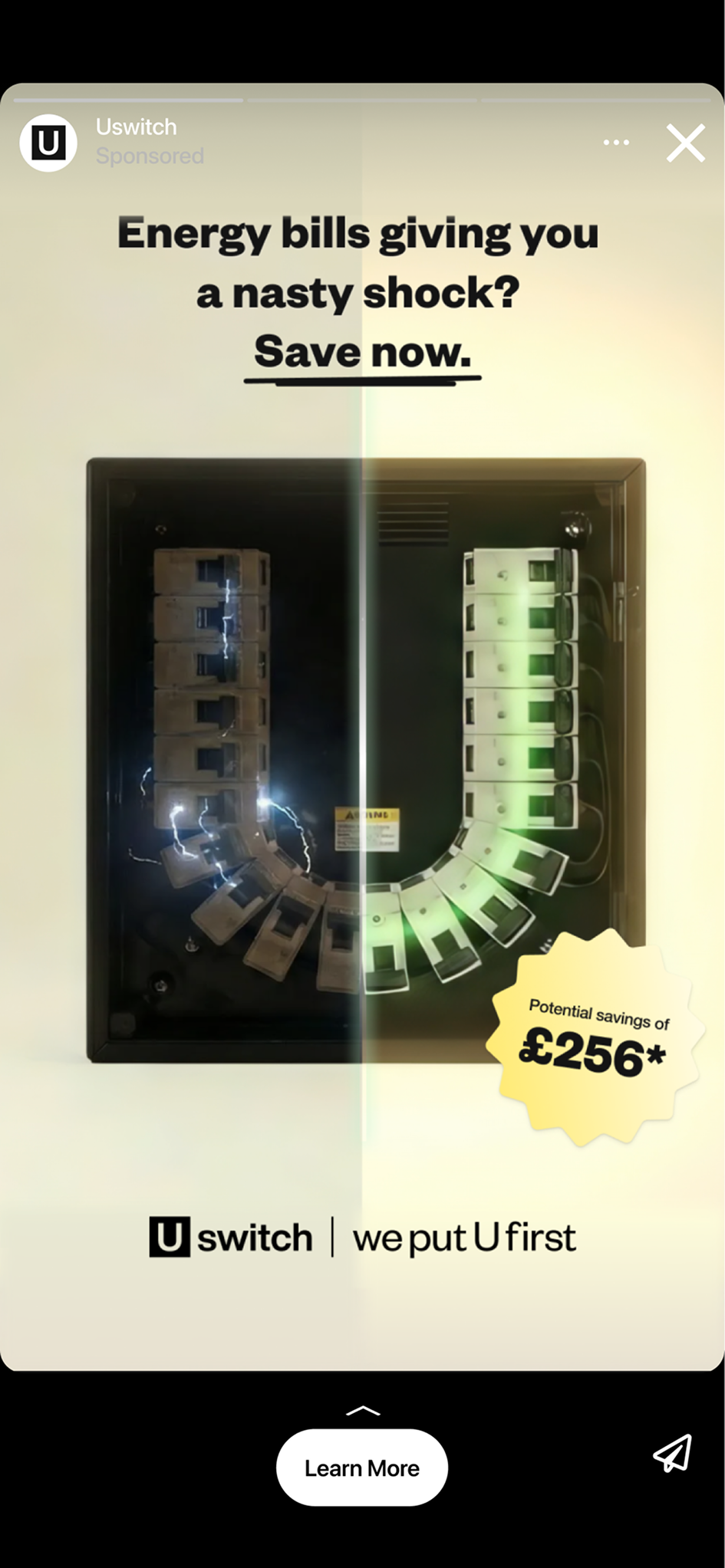 Solution state – “Switch and save now at Uswitch.com” in the first 3 seconds